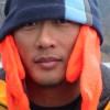 Cory gets ready for his second run of the day, but has to take a break to laugh first.....Chris...