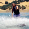 Sliding the top of the wake and putting up a little mist into the air. Pretty sweet trick to pass...
