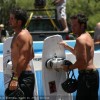 Brett morari and Trever Marquette at Red Bull Wet Dreams Wake Tour rail jam. Photo by Andrew...